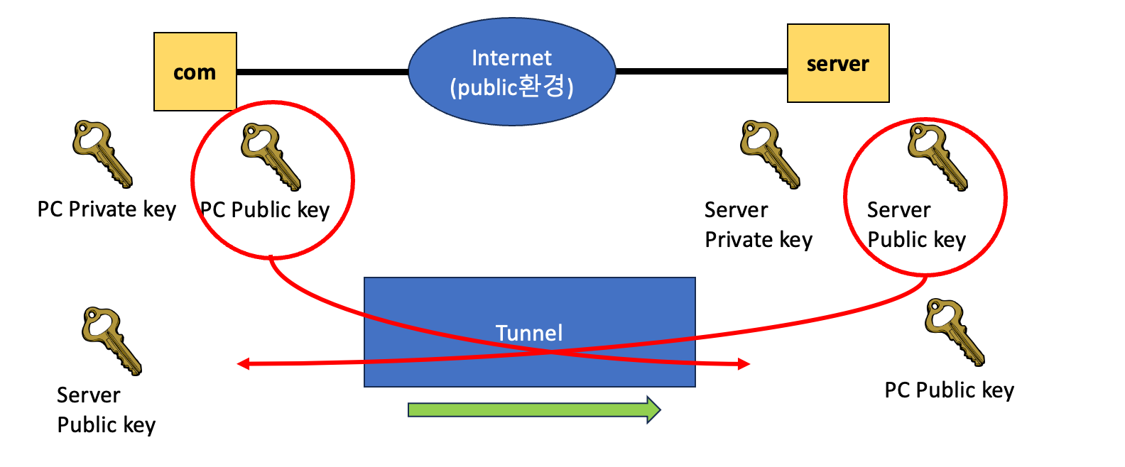 먼저 PC와 Server 모두 자신의 비대칭 키 쌍을 생성합니다.